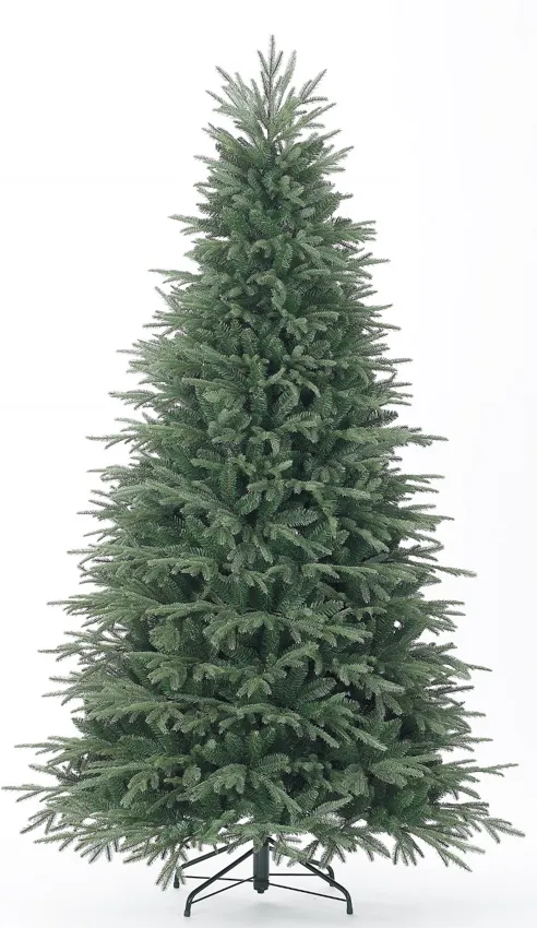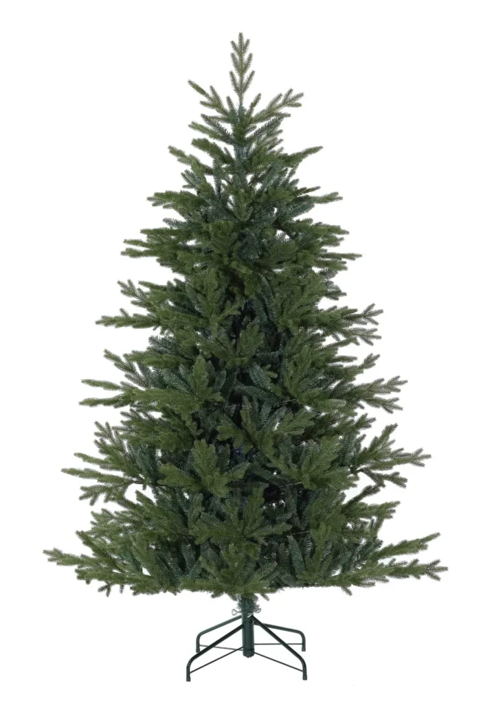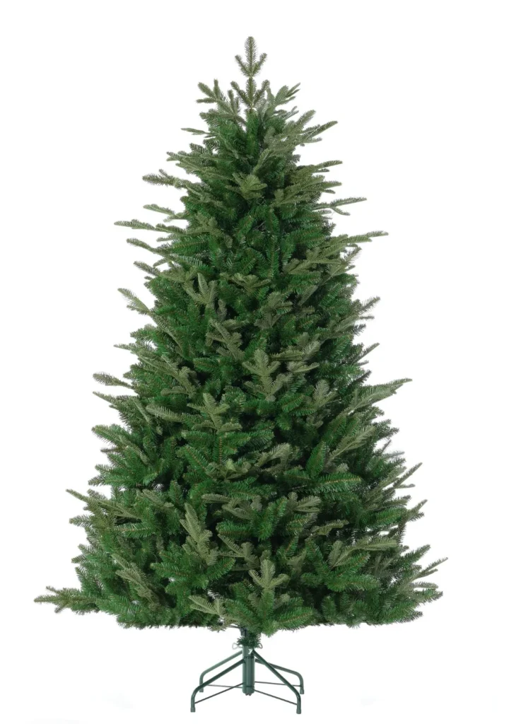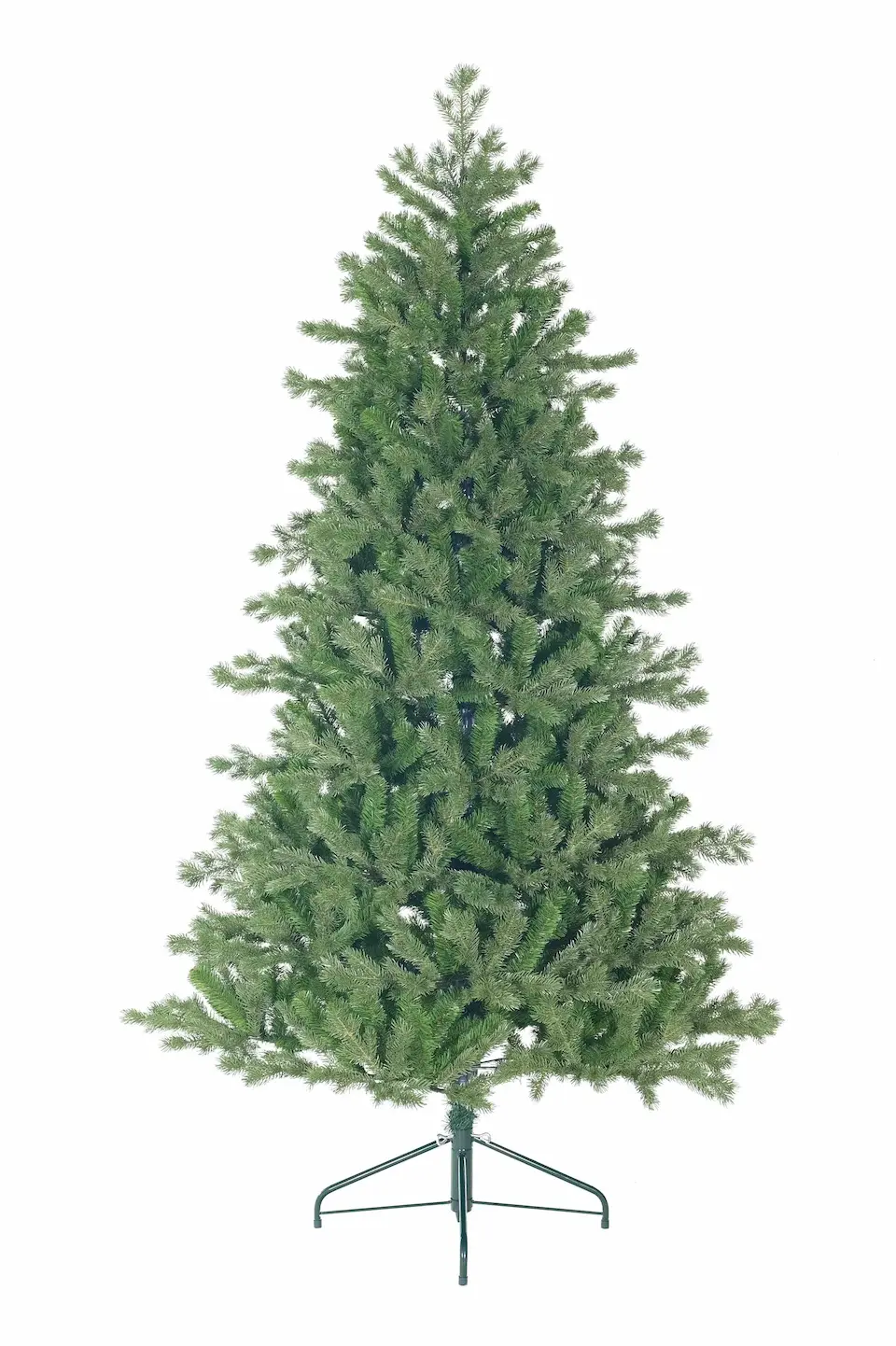 The Highland Fir Green is a classic and lush tree that offers a high-end forest look at a budget-friendly price. Its long, hard-needle leaves create a full silhouette that works perfectly for large commercial displays or cozy family living rooms. This wide tree is specially designed to hold heavy ornaments for a professional holiday finish.