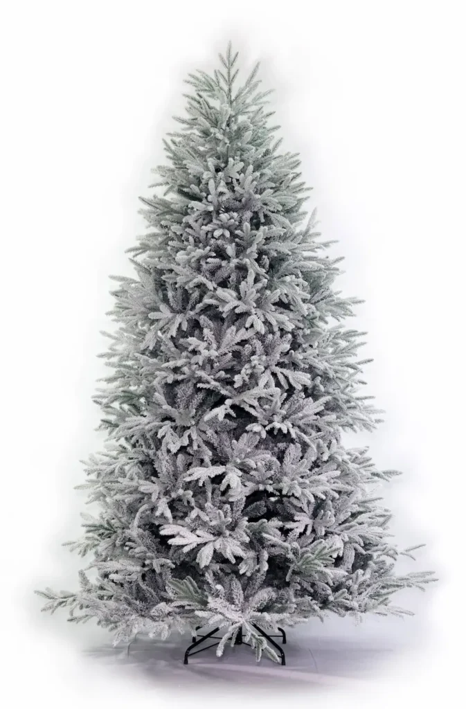The Lake Shore Spruce + Snow is a tall, impressive tree that has been a favorite for over 20 years. It combines realistic molded leaves with classic film needles, all dusted with a generous layer of snow for a stunning winter look. It is perfect for wowing guests in elegant homes or commercial displays.